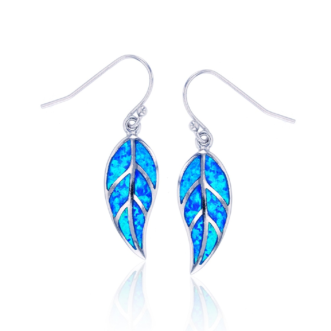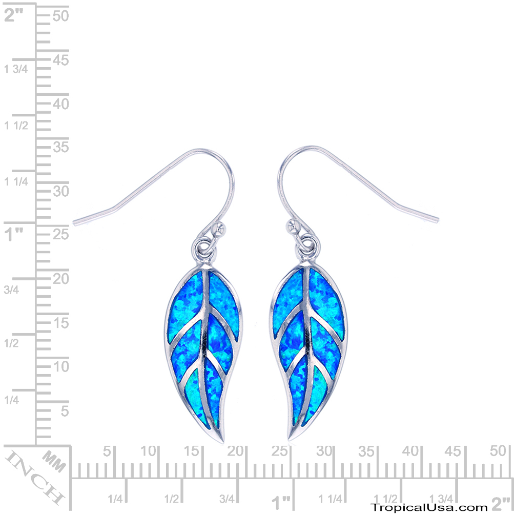 > Opal Sterling Silver Maile Leaf Dangling Earrings