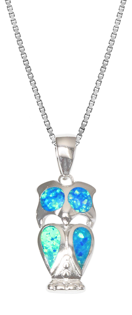 Owl Blue Eyes Opal Sterling Silver Pendant Hawaii