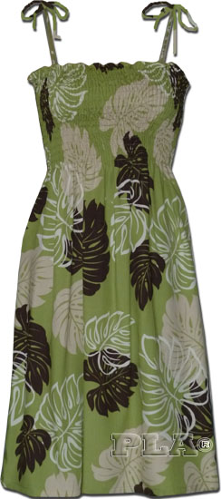 Summer Hawaiian Dress Paradise Island Sage Rayon Smocked