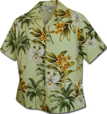Paradise Motions Women's Hawaiian Clothes Sage Aloha shirts have become the standard outfit for backyard luaus or a day at the beach. Hawaiian luau parties are one of the favorite social events in the U.S. and they are a great place to see the awesome variety of aloha shirt designs. No Hawaiian-themed party is complete without an impressive display of the variety found in aloha shirts. The various colors and designs can be quite spectacular such this women’s Hawaiian shirts.