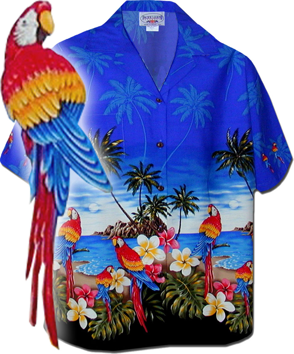 > Parrot Beach Blue Cotton Women's Hawaiian Shirts