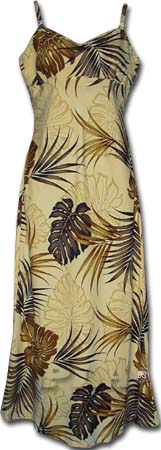 Paradise Valley Rayon Long Spaghetti Natural Tropical Dresses