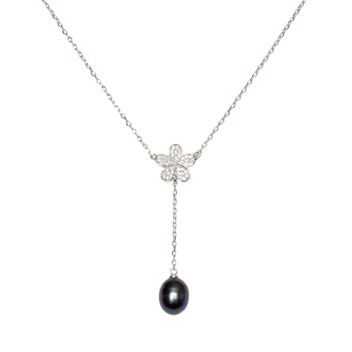 Black Pearl Drop Freshwater Cultured Sterling Silver Star with 18-inch Box Chain
