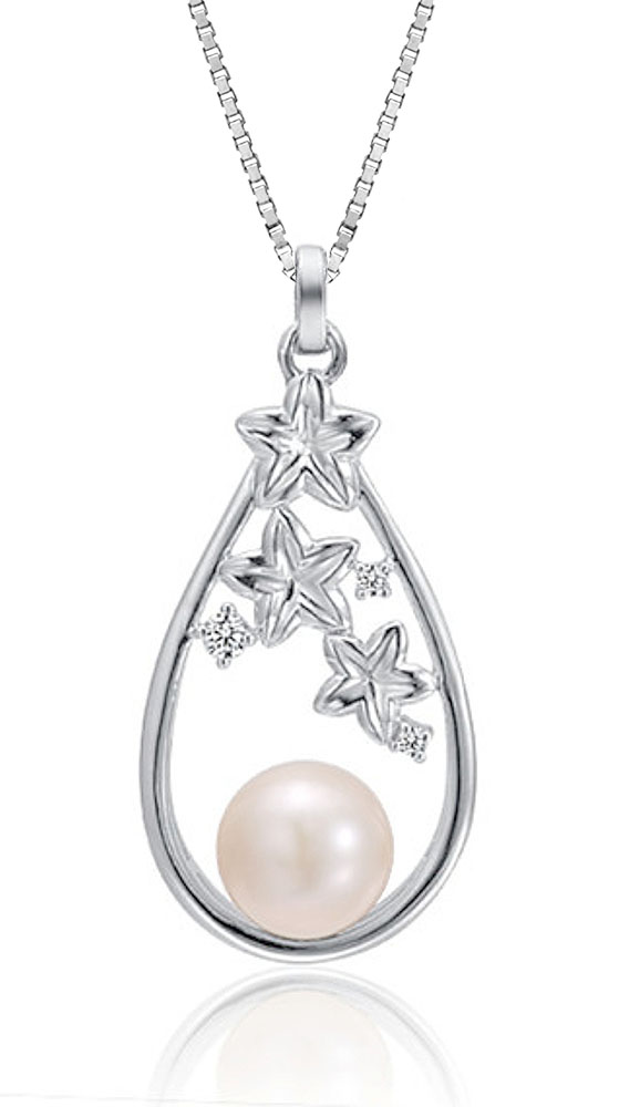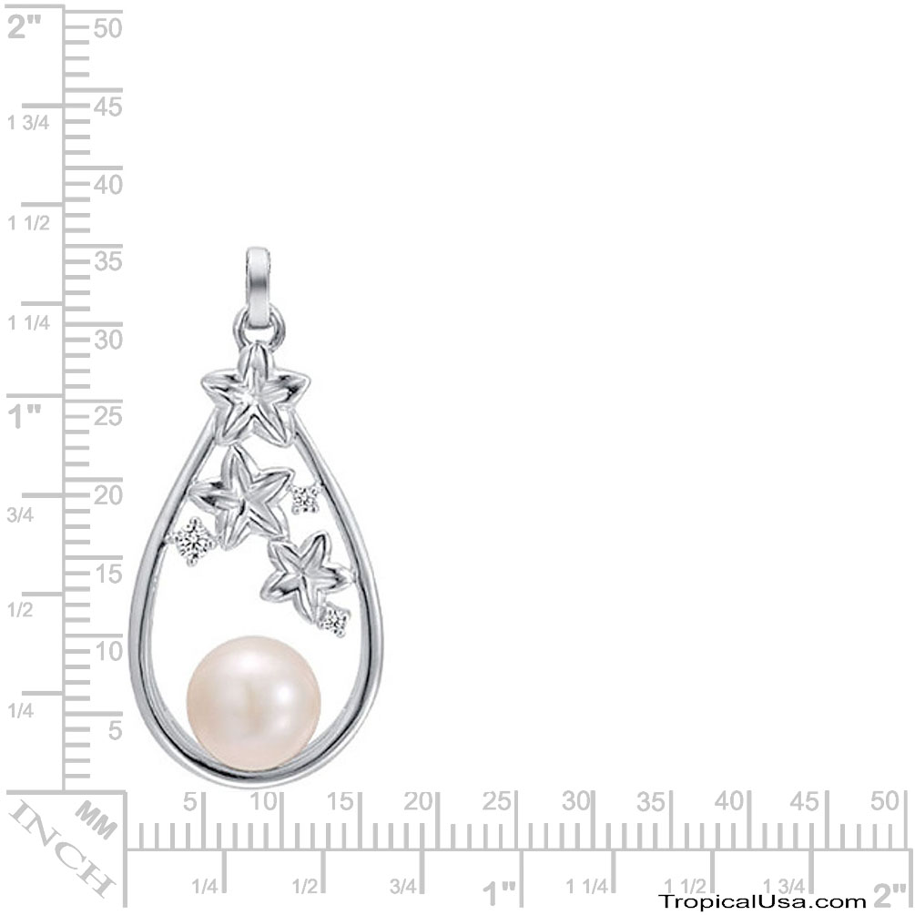 Pearl Freshwater Cultured Teardrop Plumeria Stars Sterling Silver Pendant Hawaii