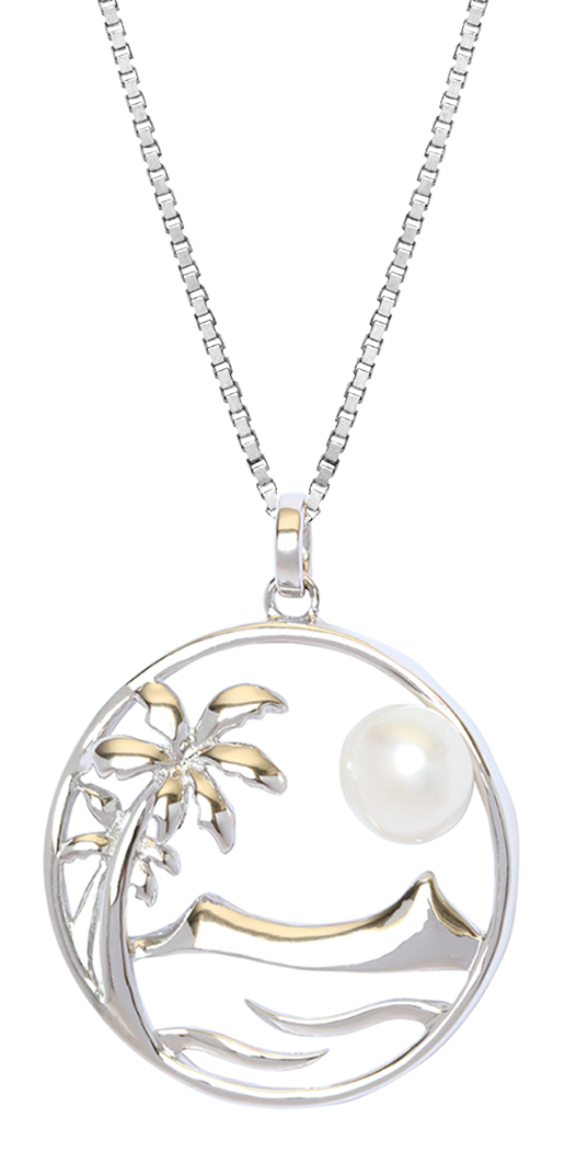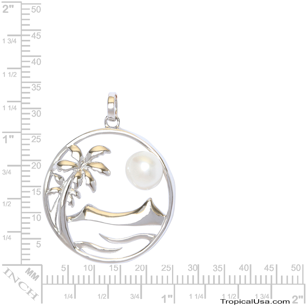 Pearl Freshwater Cultured Waikiki Diamond Head Sunset Palm Tree Pendant Hawaii
