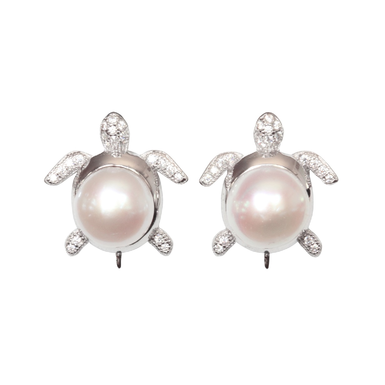Pearl Turtle Shell Freshwater Cultured Sterling Silver CZ Earrings