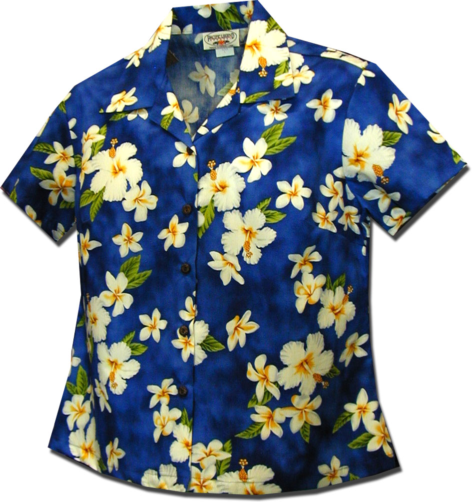 > Plumeria Garden Ladies Shirts Blue