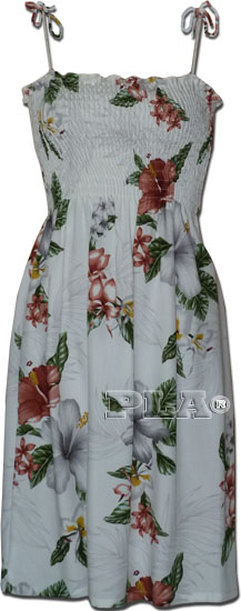 Rayon Smocked Hawaiian SundressAdorable sundresses with allover tropical Hawaiian flower prints, adjustable spaghetti straps, stretchy smocked top.