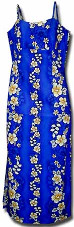 > Royal Hibiscus Panel Spaghetti Long Hawaii Dress Blue (XS,S)