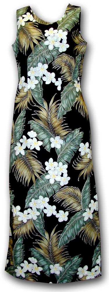 Hawaiian Clothing Black Royal Palms Long Tank Dress (XS-L)