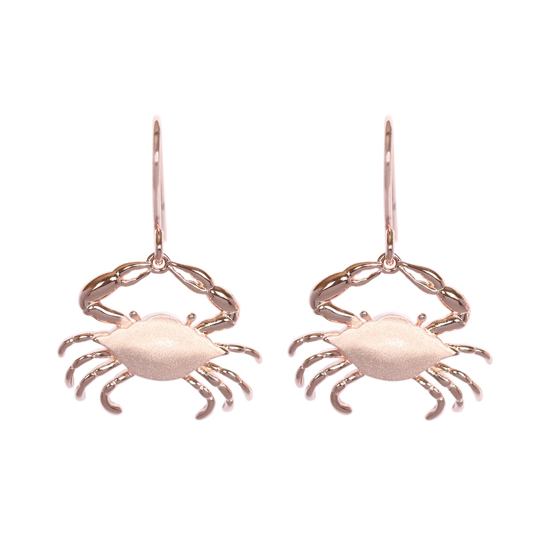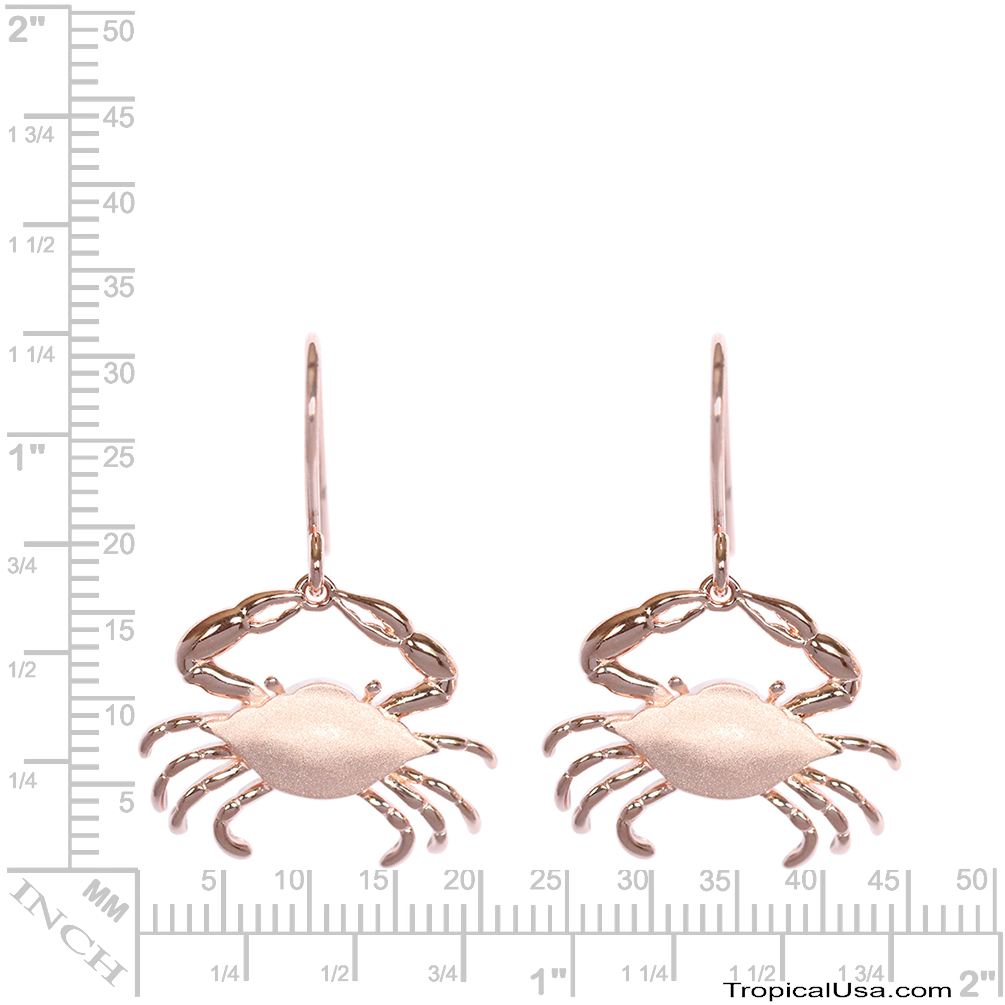 Rose Gold Plated Sterling Silver Crab Classic Dangling Earrings Hawaii