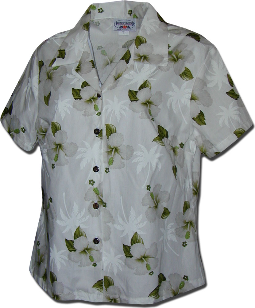 > Simple Hibiscus Ladies Fitted Hawaiian Shirts White