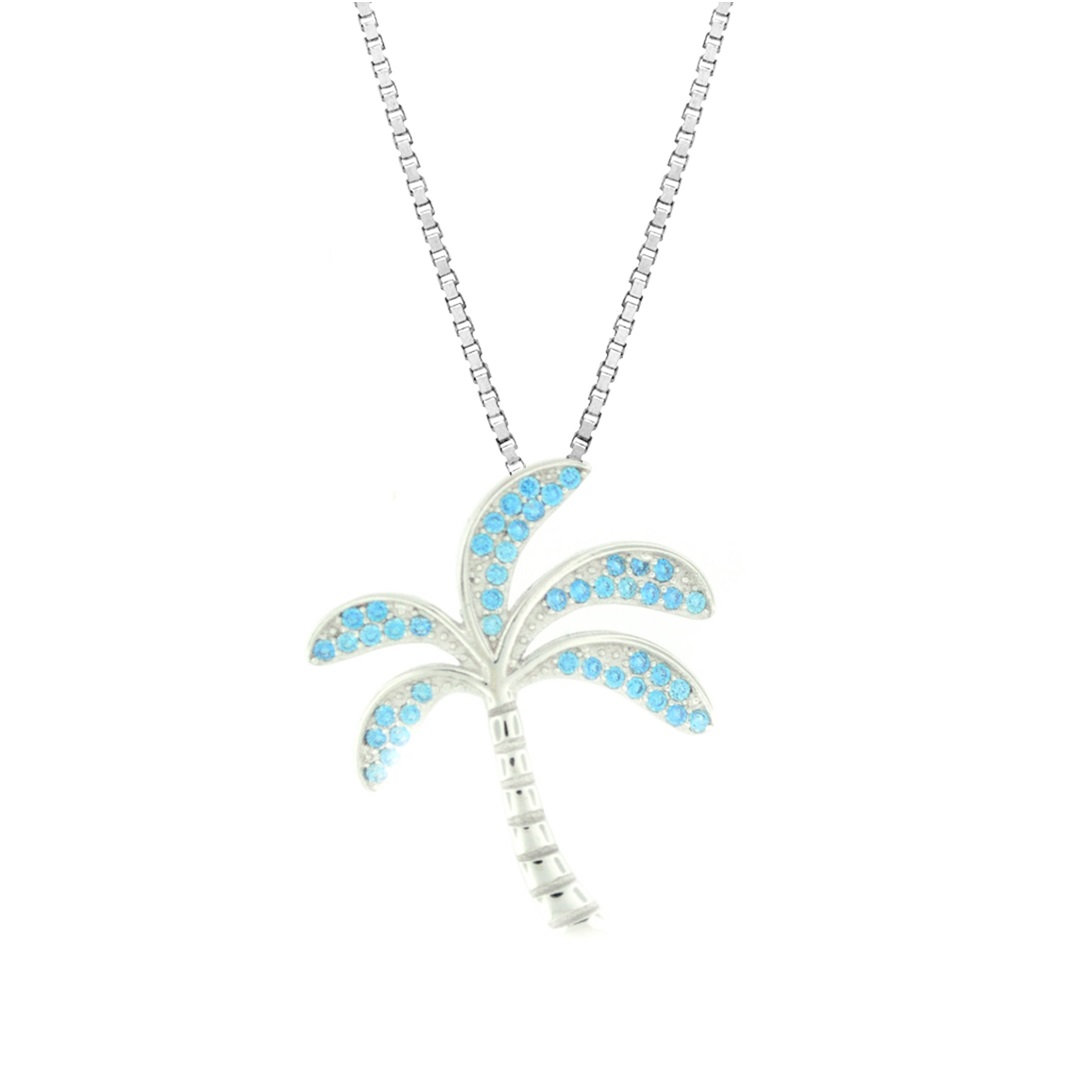 Sterling Silver Blue Topaz Playful Palm Tree Pendant Hawaii