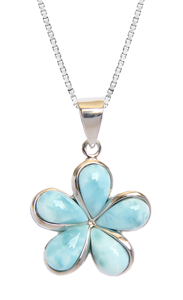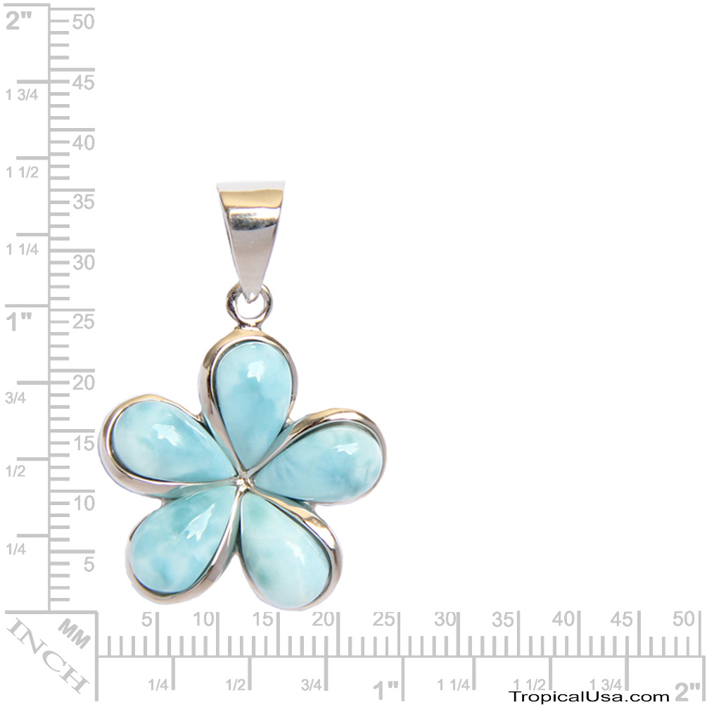 Sterling Silver Flower Larimar Blue Puff Petals Pendant Hawaii