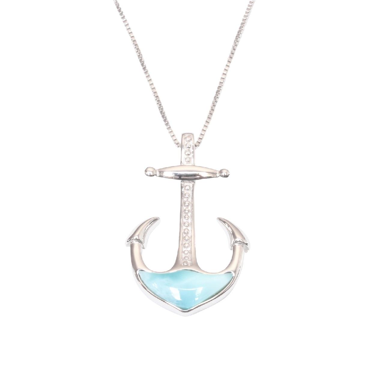 Sterling Silver Larimar Blue Anchor CZ Pendant and Chain