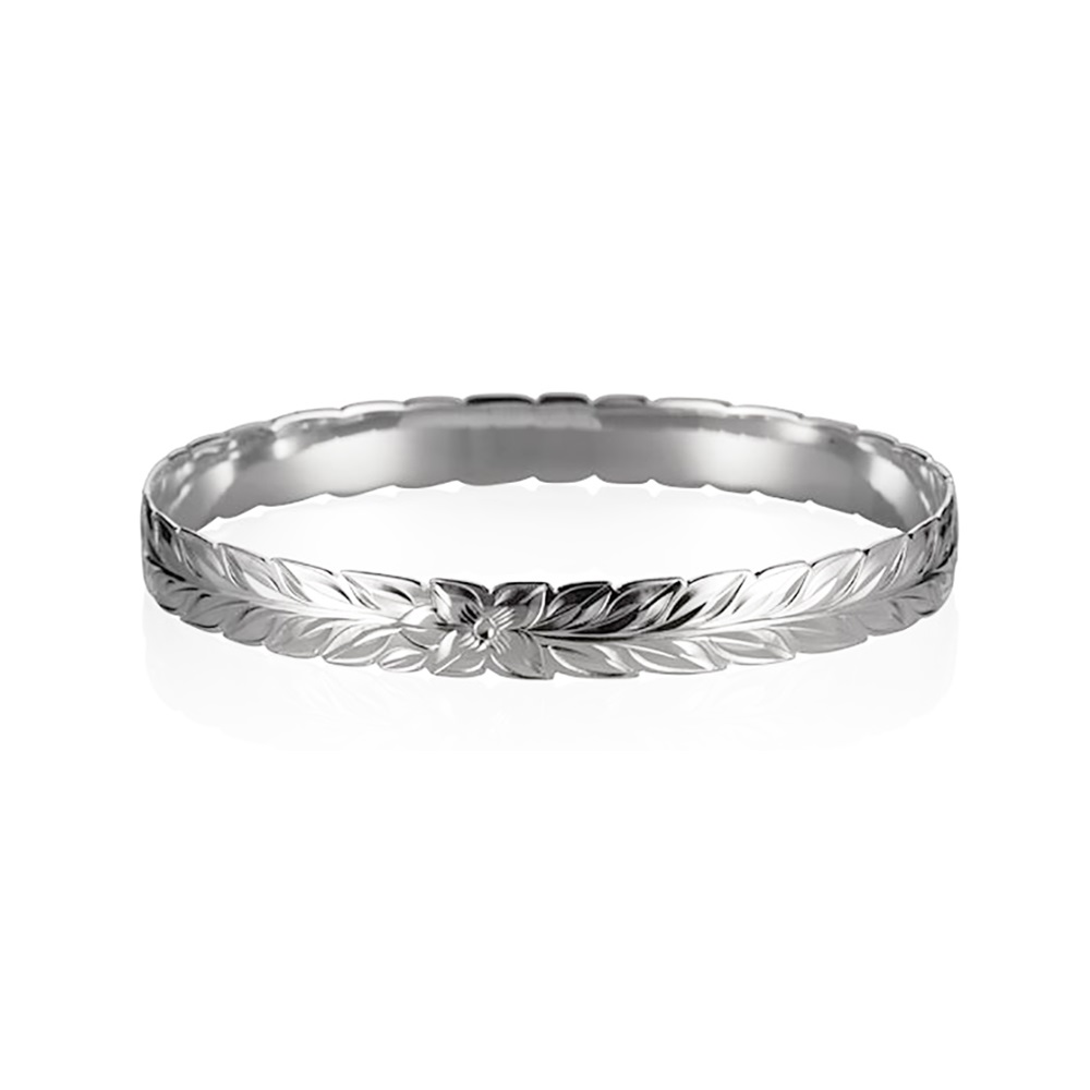 > Sterling Silver Maile Plumeria Bangle 10mm Elegant