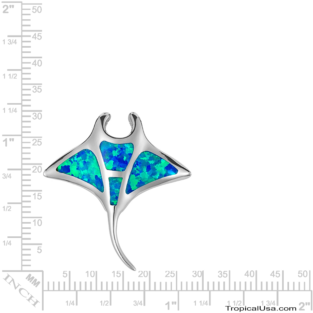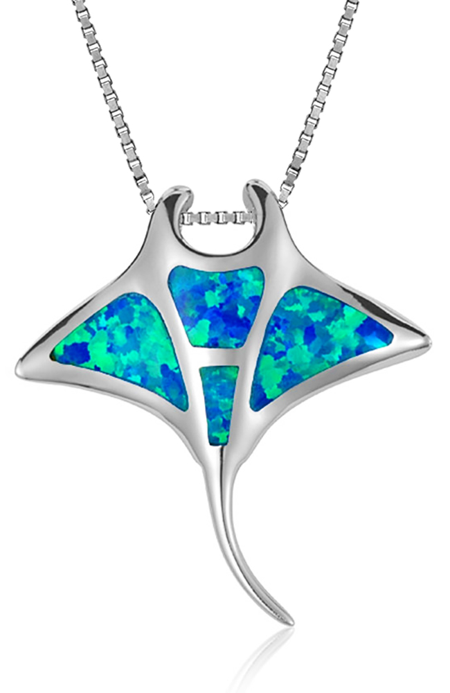 Sterling Silver Opal Blue Manta Ray Pendant Hawaii