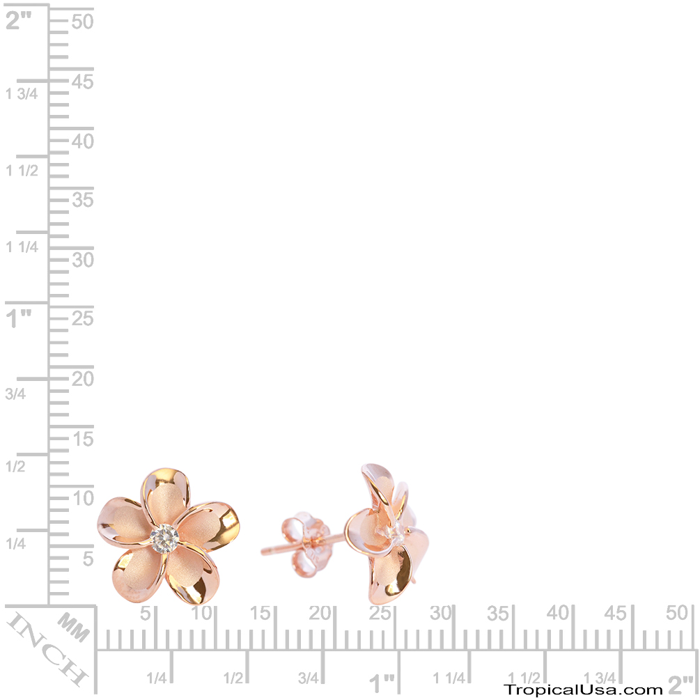 > Sterling Silver Rose Gold Plated CZ Plumeria Stud Earrings Hawaii