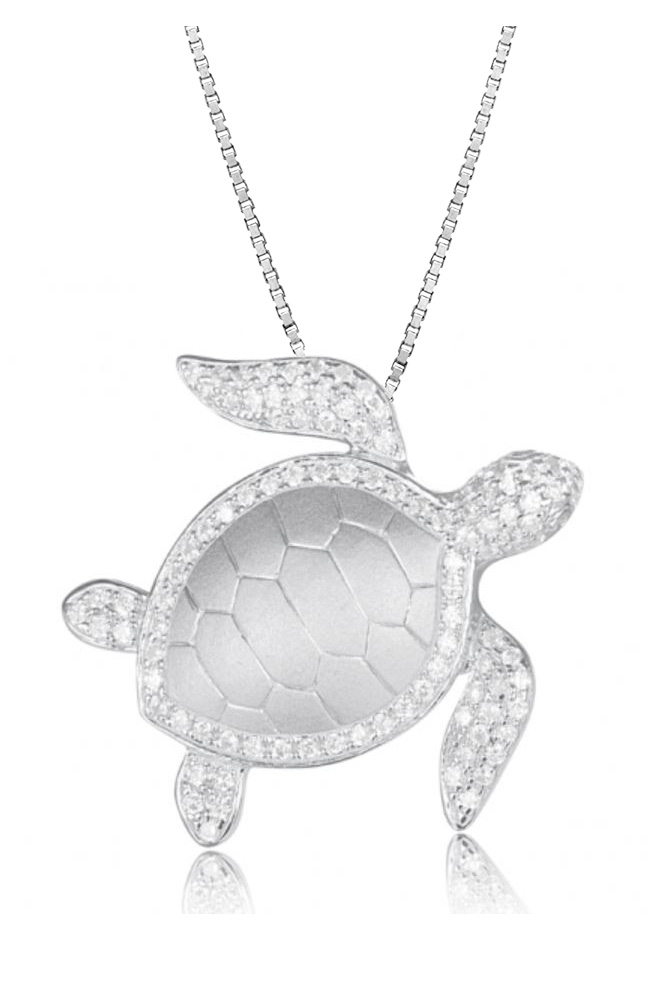 Sterling Silver Turtle Classic Cubic Zirconia CZ Pendant Hawaii