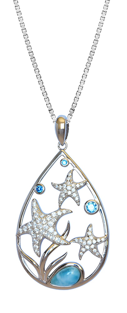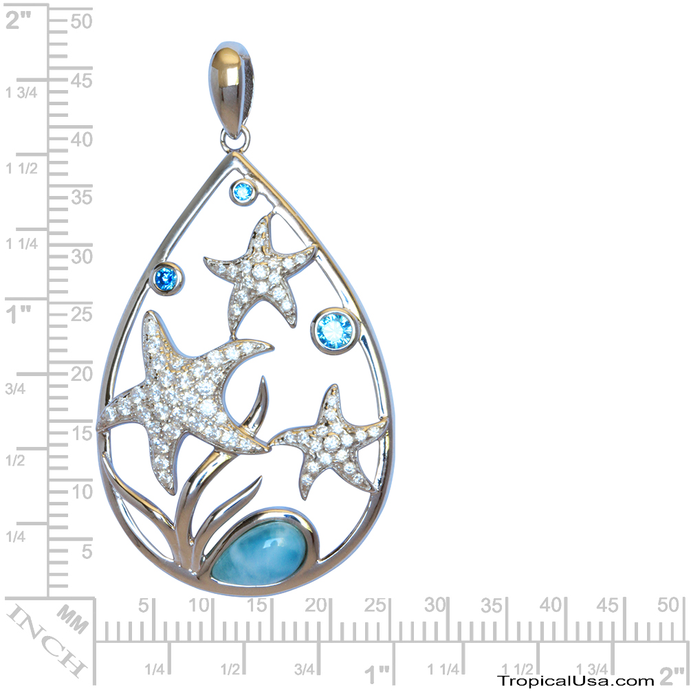 Sterling Silver Under the Sea Starfish Larimar CZ Pendant Hawaii