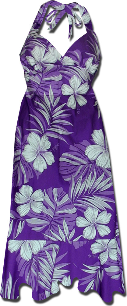 SunDress Hibiscus Bloosom Purple Hawaiian Halter Dresses
