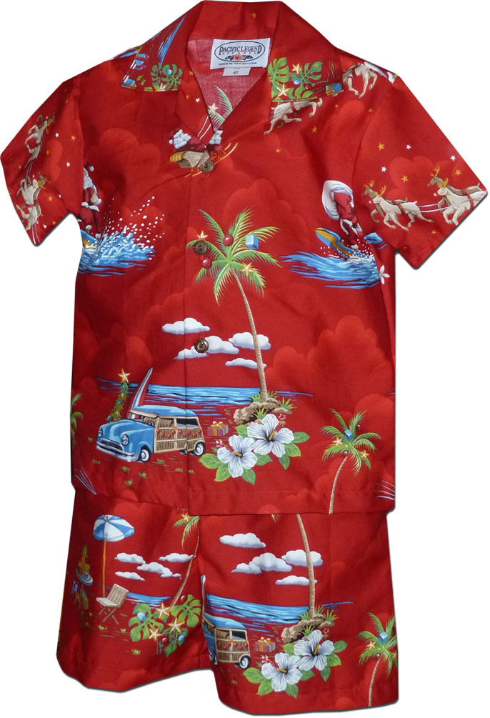 What a great Christmas Hawaiian Red outfit for your little boy this year!
