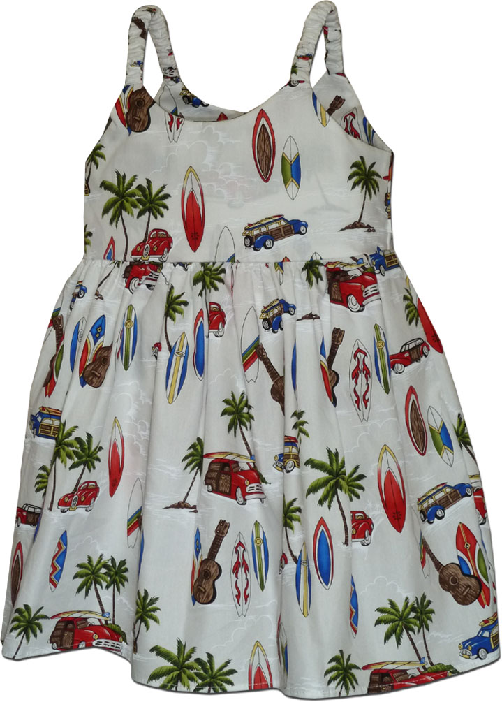 ♥ Toddler Hawaiian Dress Woodies in White ♥ 100% cotton poplin