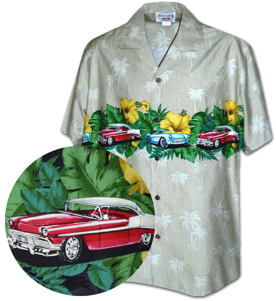 > Tropical Classic Cars Men's Cotton Shirt Khaki