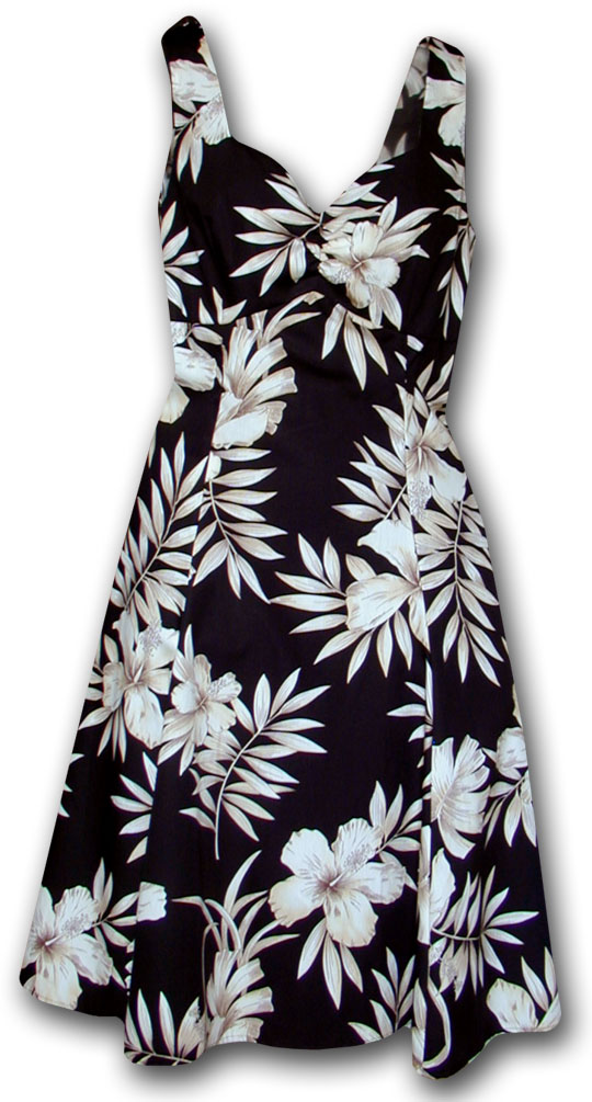 Tropical Moments Black Hawaiian Sun Dress (M)