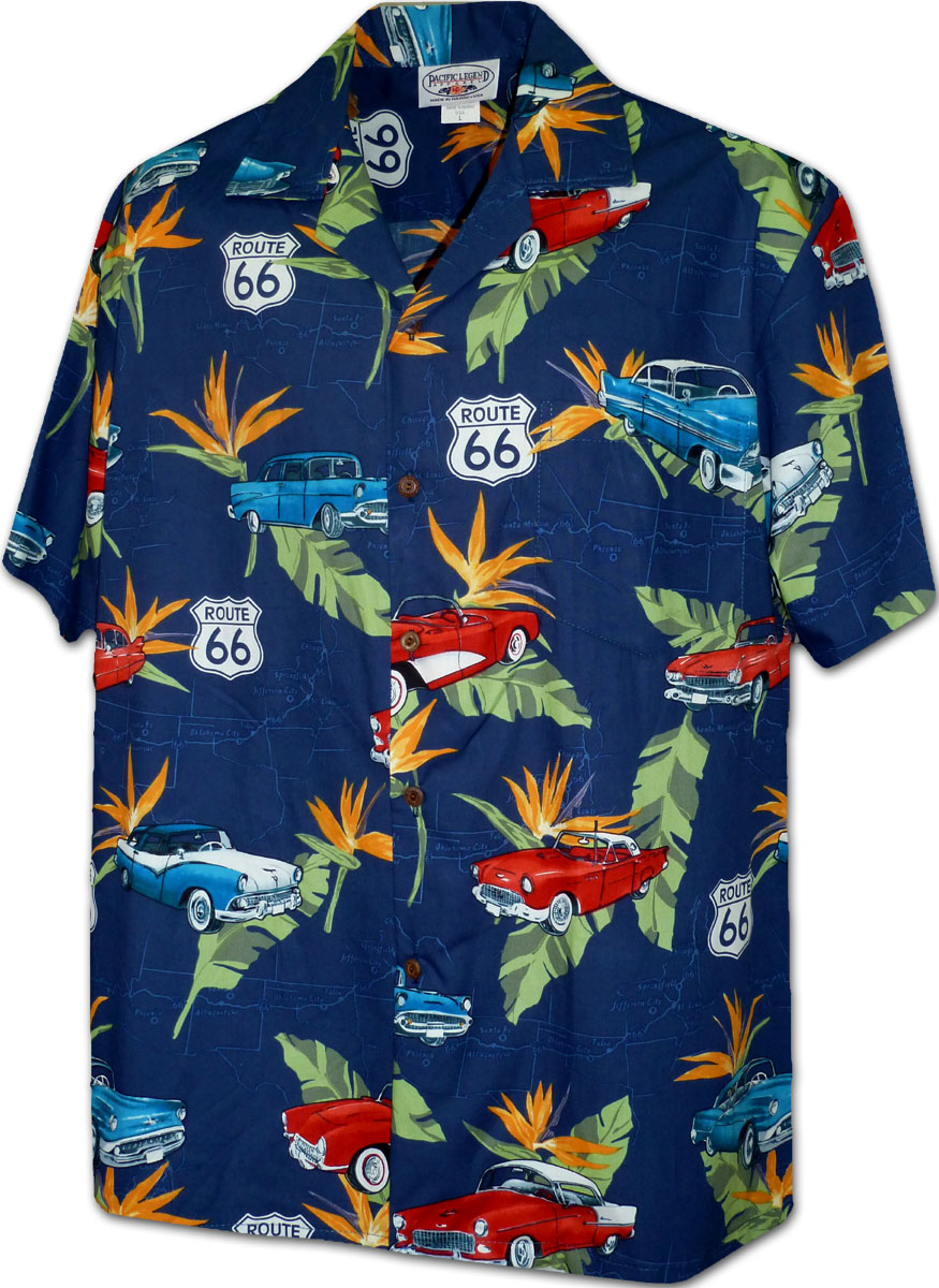 > Tropical Route 66 Men's Classic Car Shirt 3890Navy