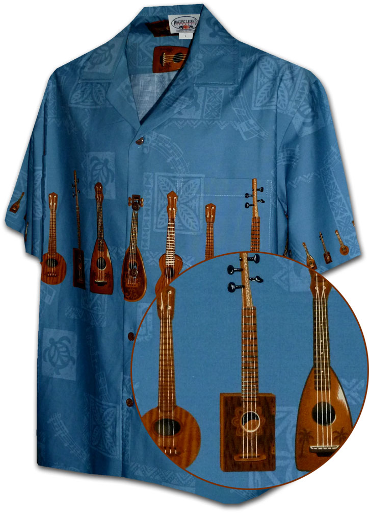 Vintage Ukulele Aloha Shirts Blue