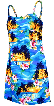 Waikiki Sunset Adjustable Spaghetti Aloha Dress Blue (S-XL)