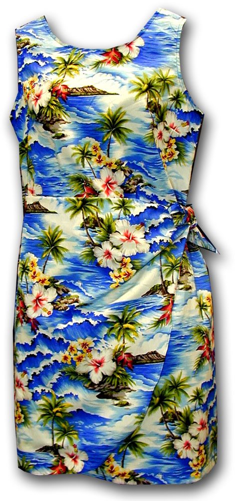 > Hawaiian Style Dresses Blue Waikiki Beach Sarong Dress