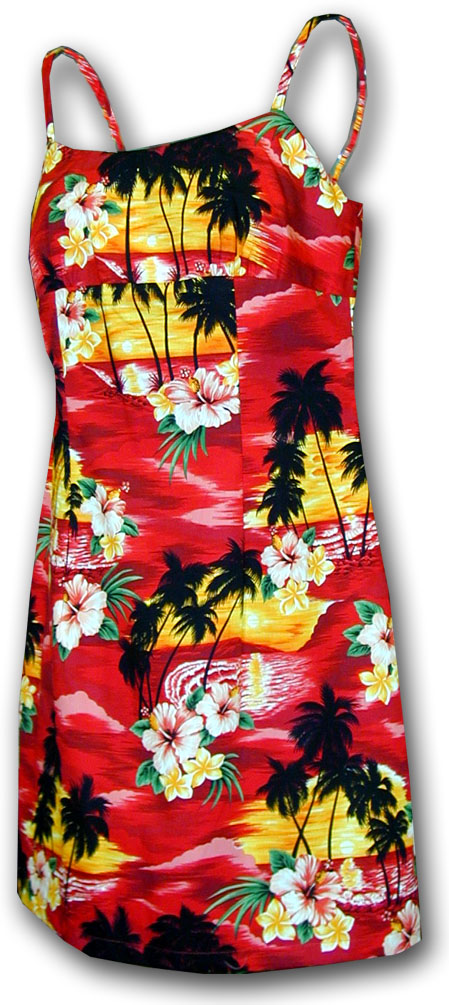 > Waikiki Sunset Spaghetti Aloha Dress Red