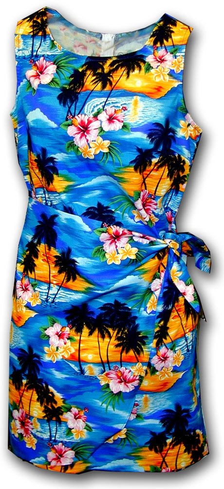 > Tropical Dresses Blue Sarong Waikiki Sunset