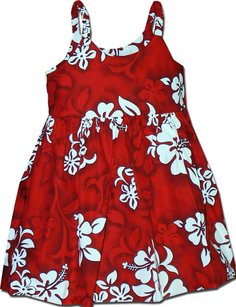 > Red Toddlers Hawaiian Dress White Hibiscus