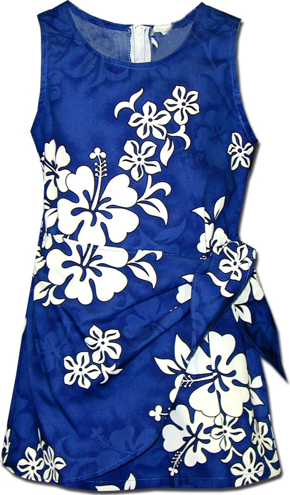 Girls Sarong Blue Aloha Dress White Hibiscus*