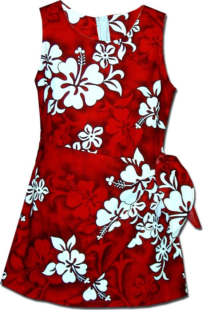 > Girls Sarong Red Aloha Dress White Hibiscus